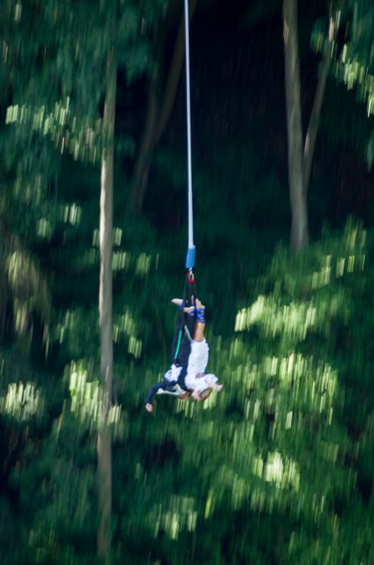 Les amoureux échangent leurs voeux et s’élancent liés, attachés ensemble , dans le vide !