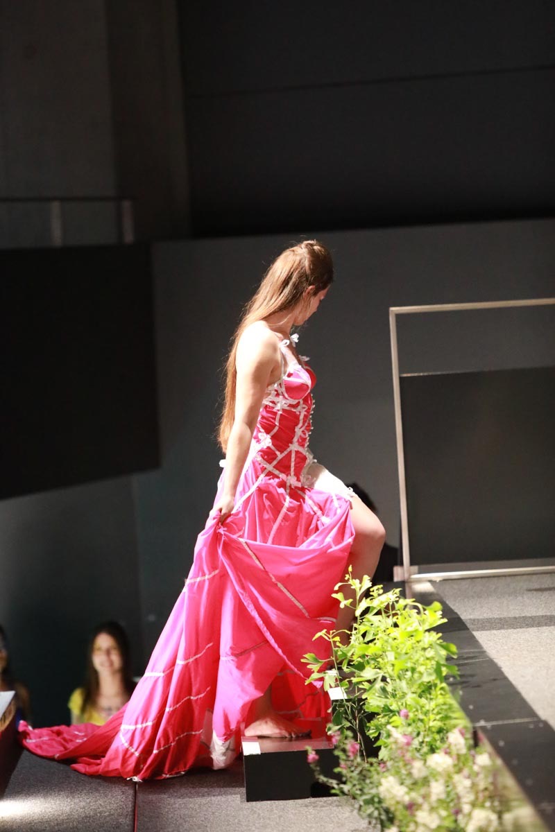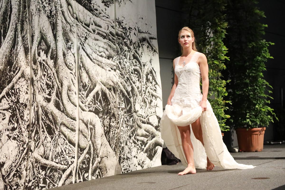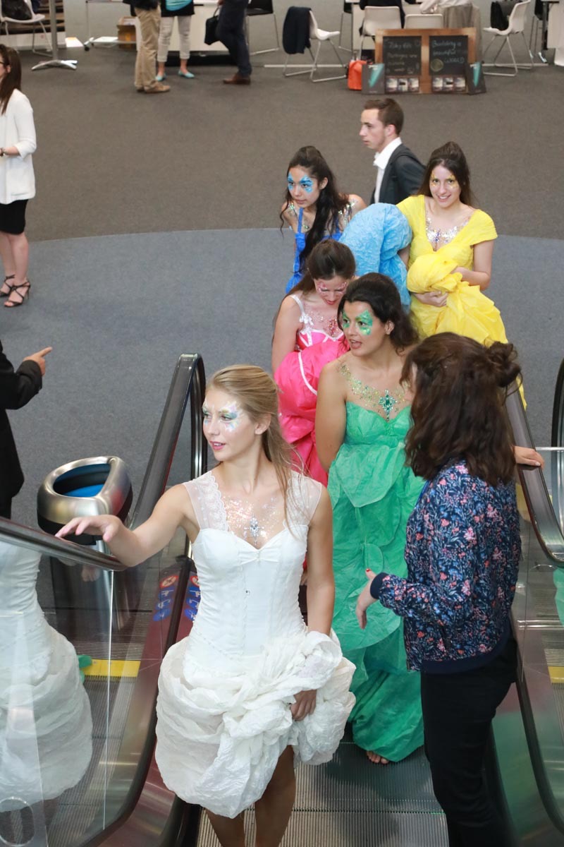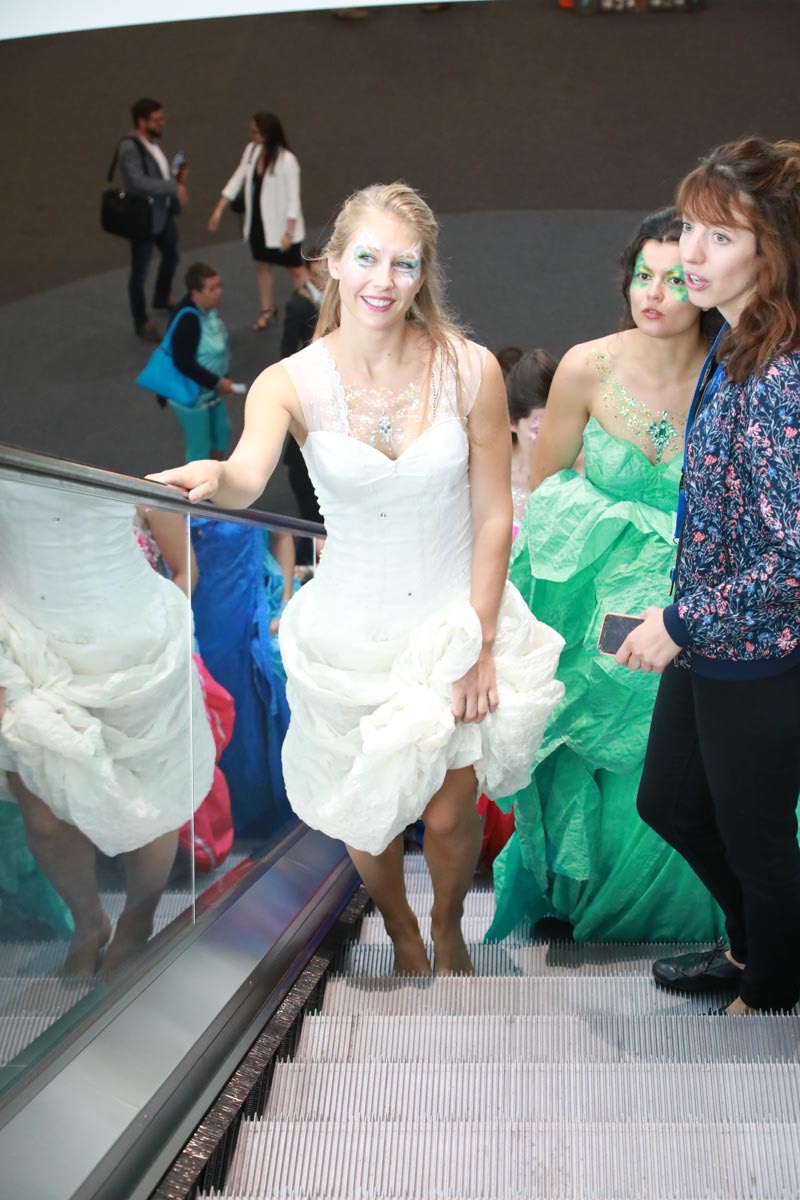 - Tess Roux Pache présente la robe Papillon crée en hommage au peuple Surui , elle est réalisée en parachute recyclé (don de voile de la Fédération Française de Parachutisme )