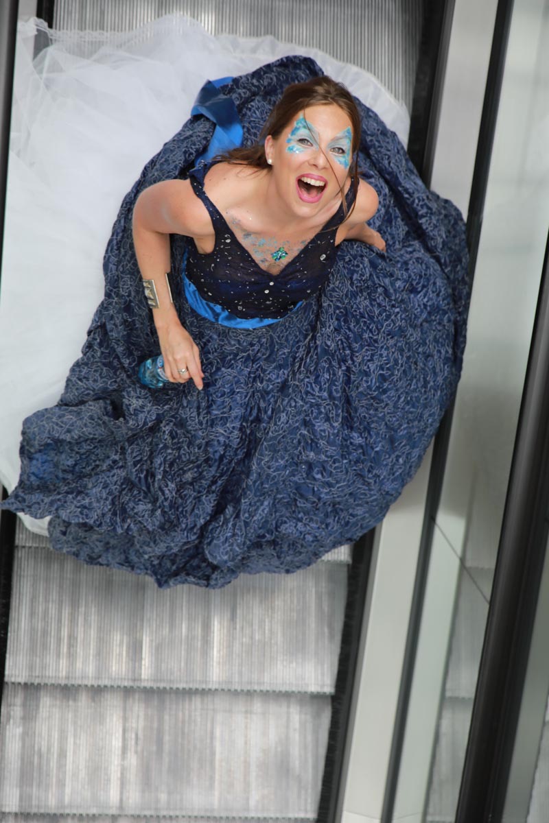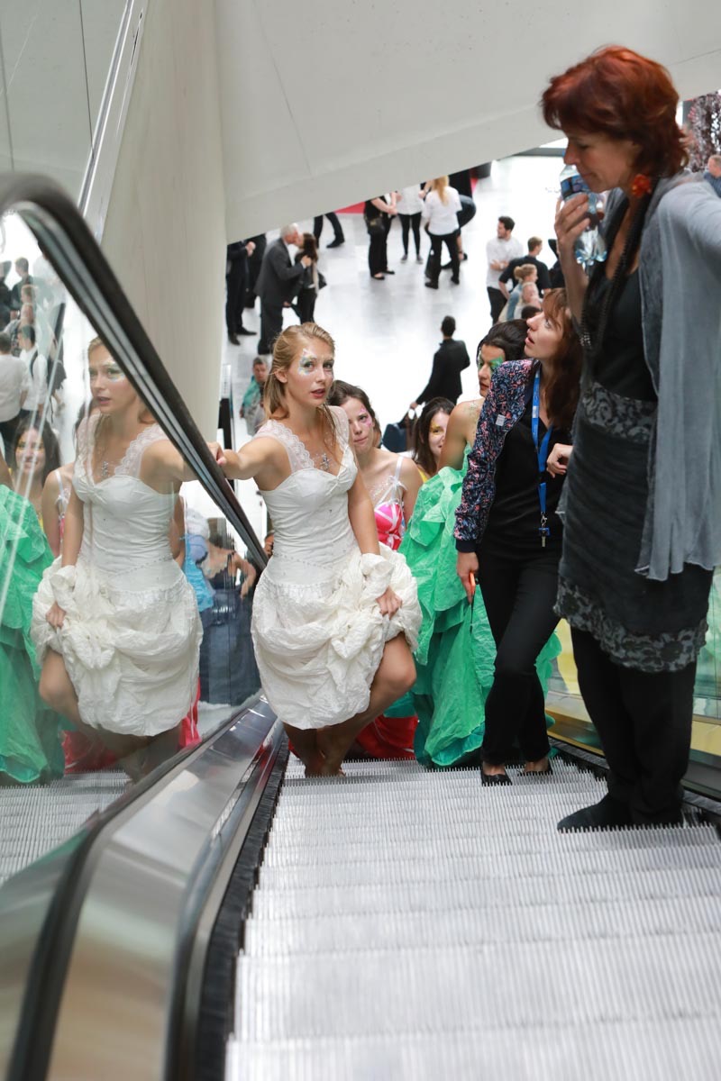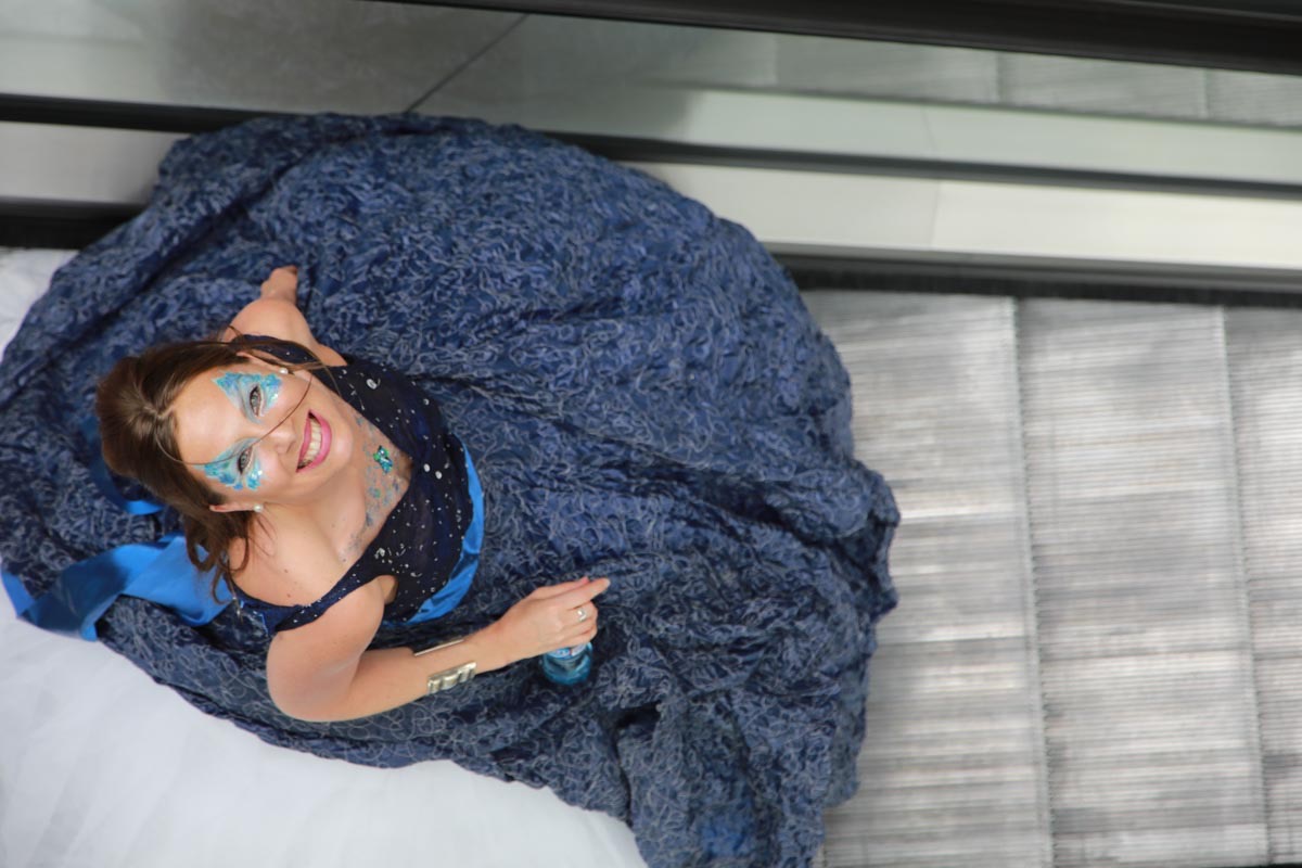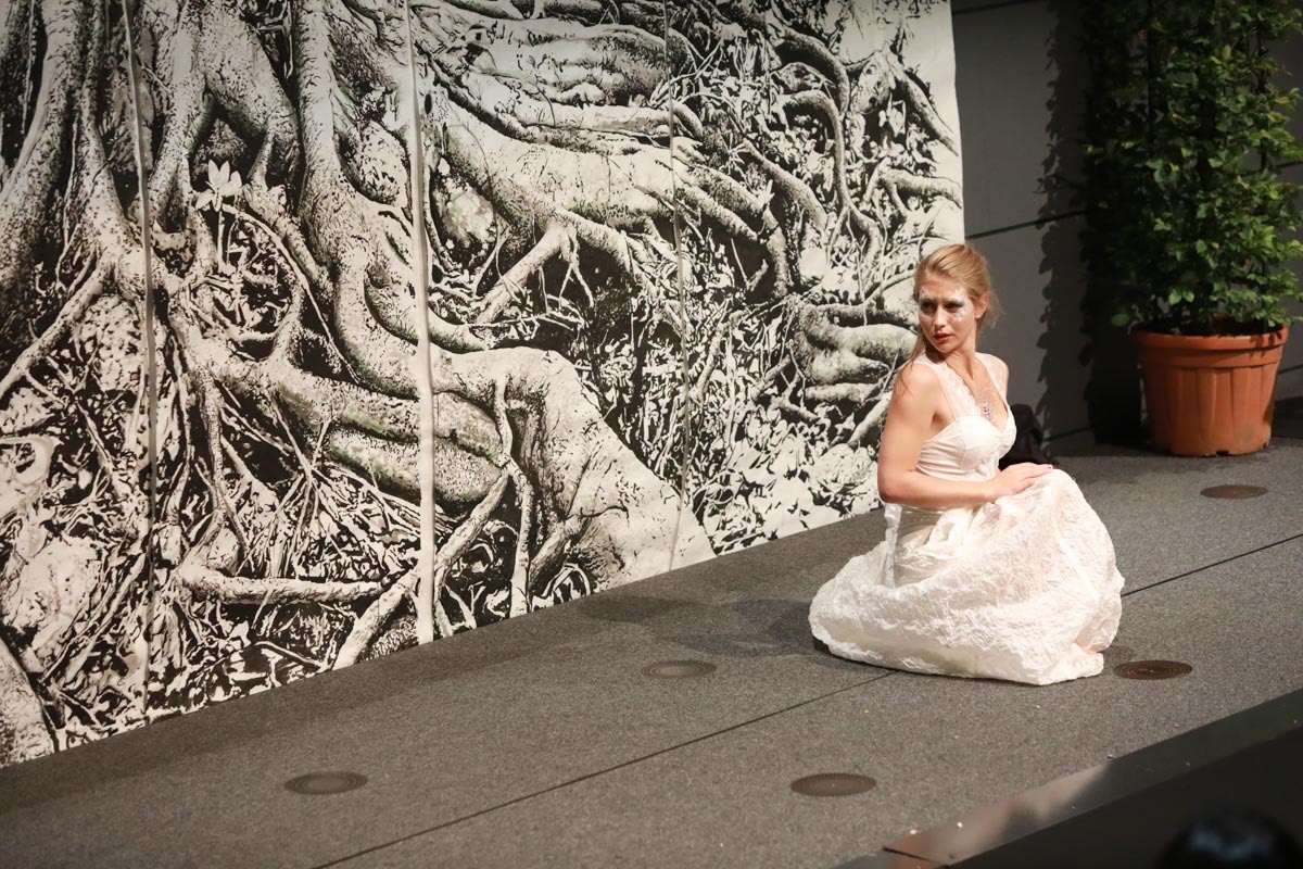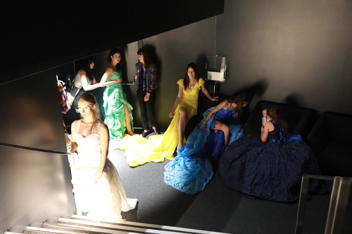 - Tess Roux Pache présente la robe Papillon crée en hommage au peuple Surui , elle est réalisée en parachute recyclé (don de voile de la Fédération Française de Parachutisme )