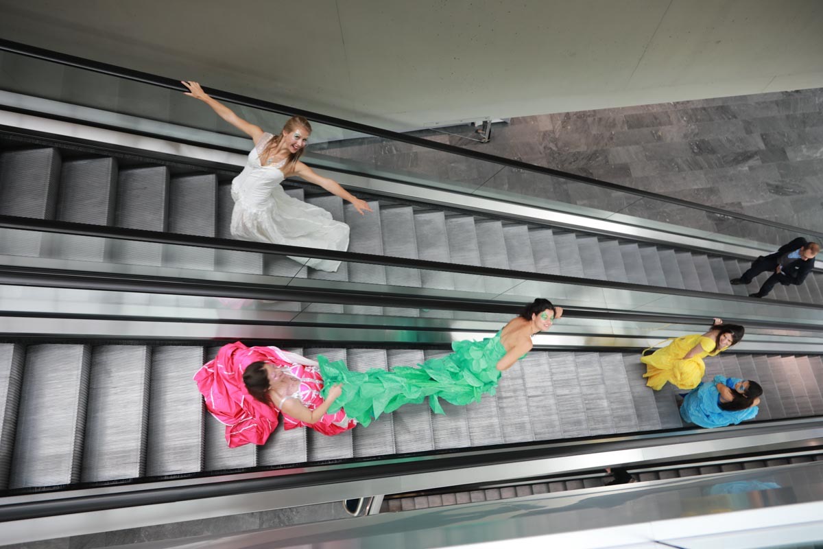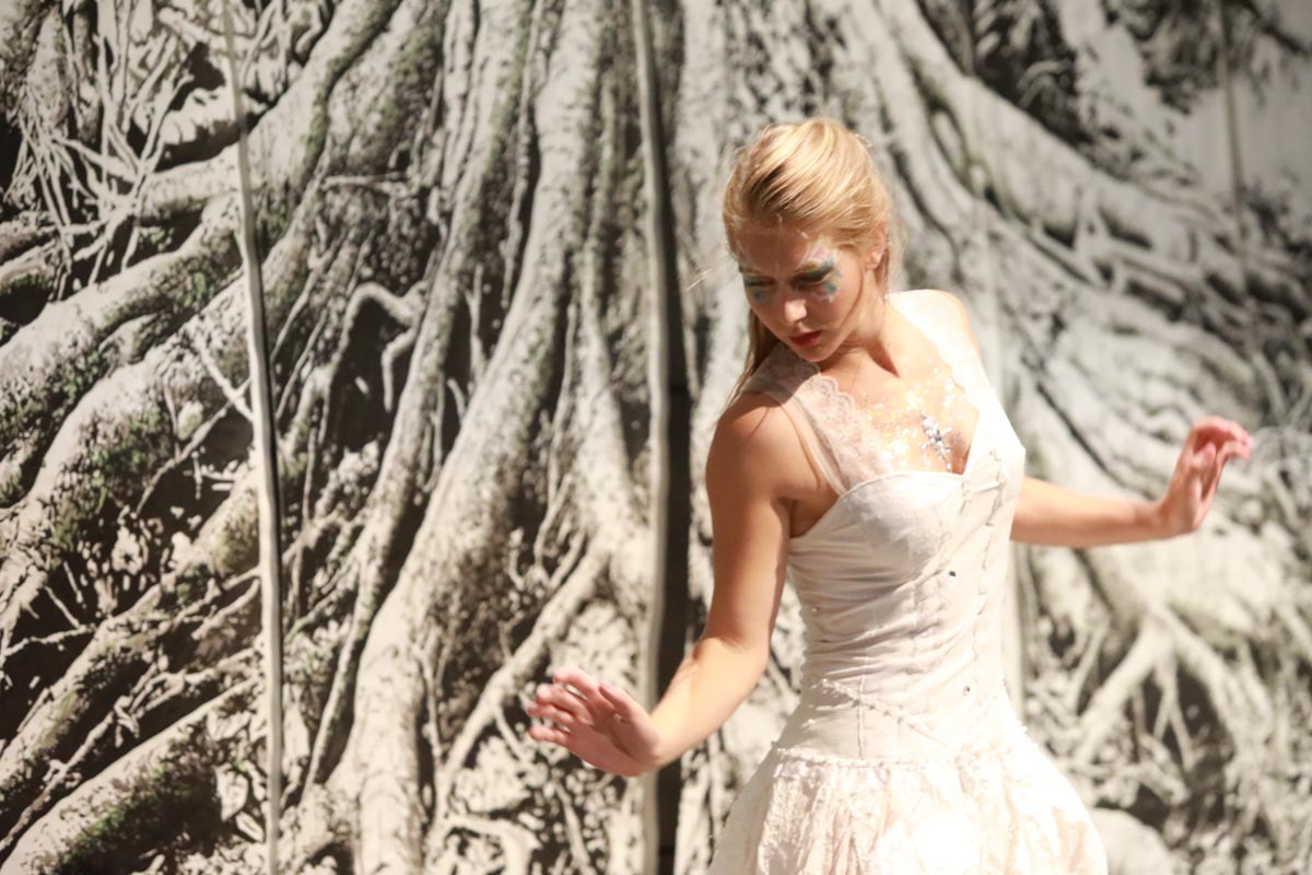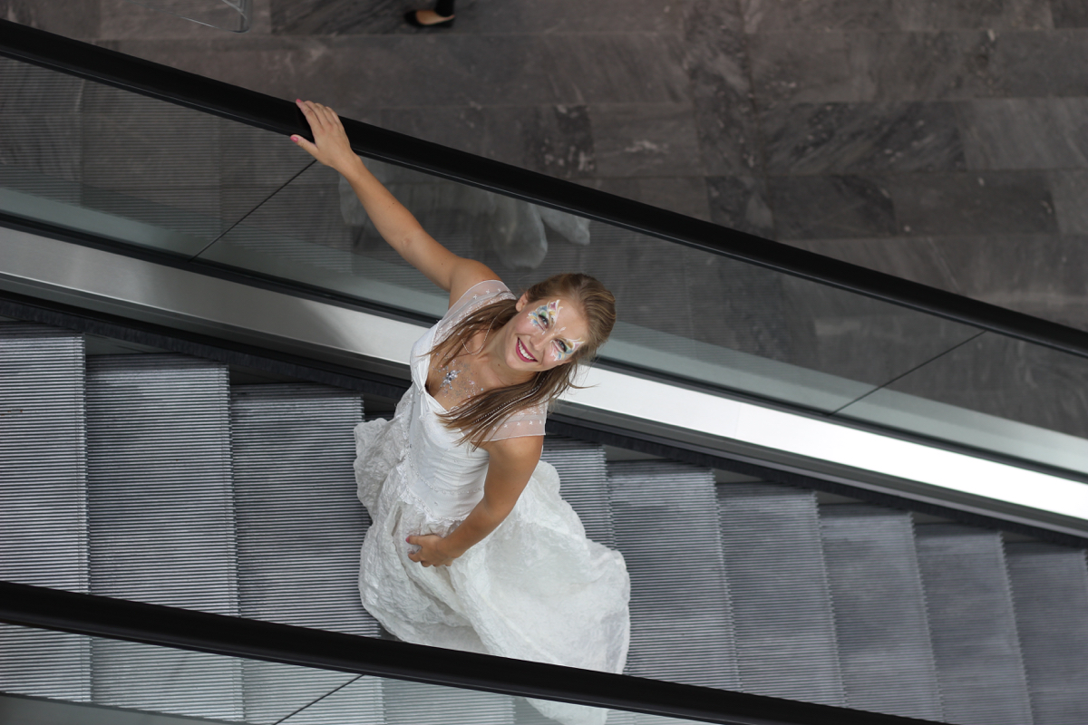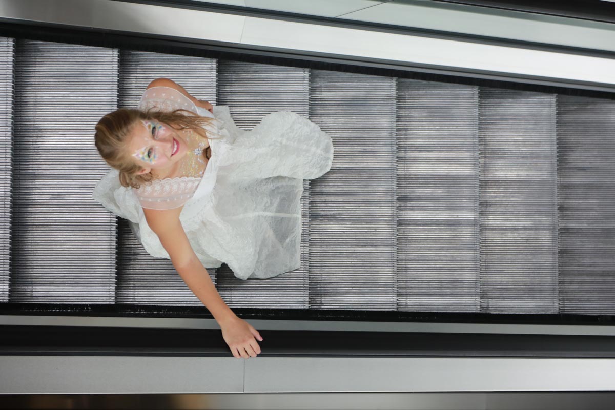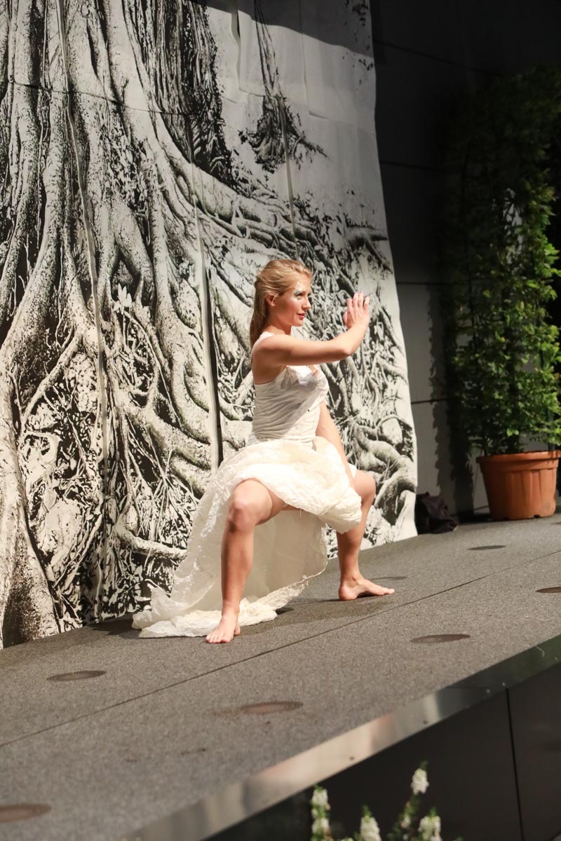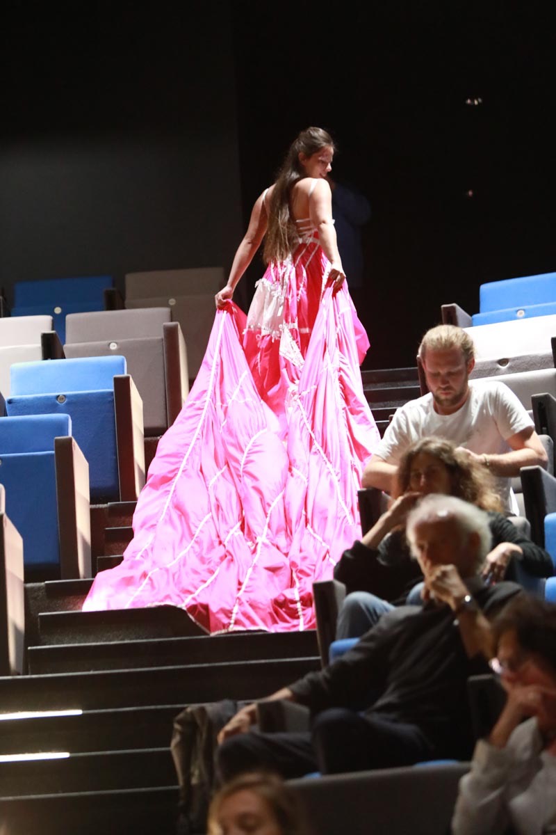 - Agathe Pétrini danseuse et chorégraphe présente la première robe « Blanche » réalisée en parachute recyclé (don de voile de la Fédération Française de Parachutisme) maille et pierres