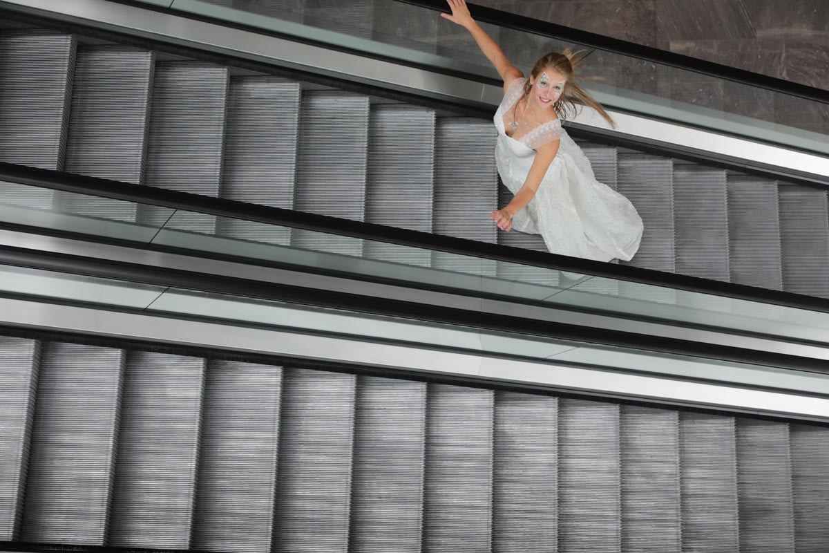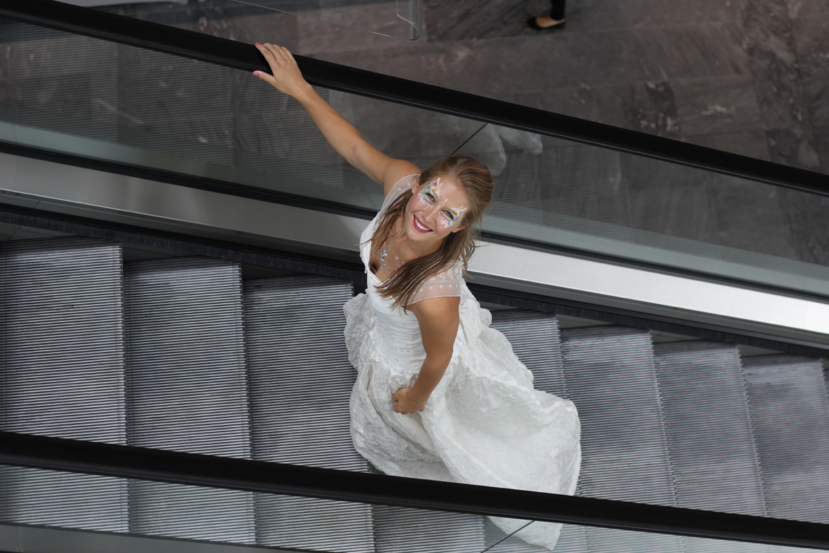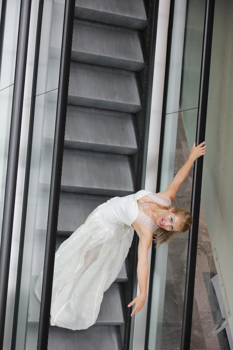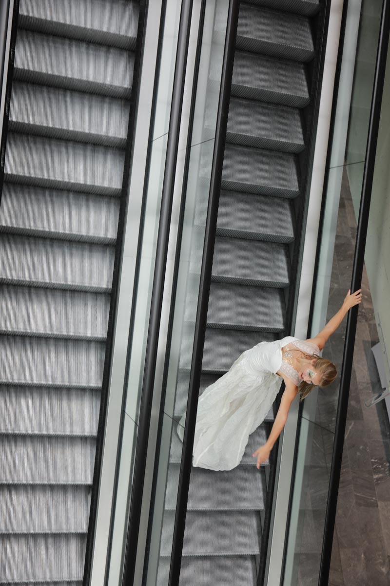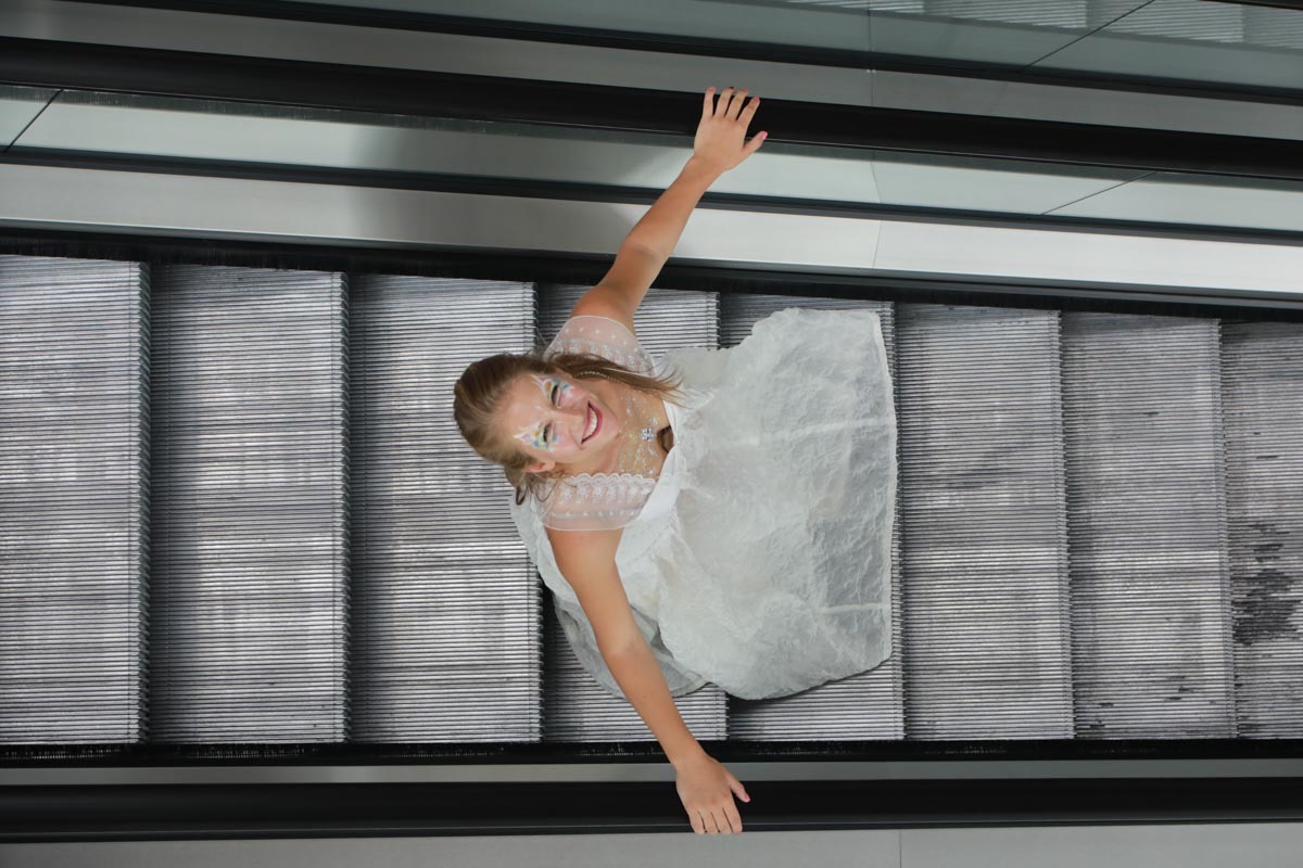 - Agathe Pétrini danseuse et chorégraphe présente la première robe « Blanche » réalisée en parachute recyclé (don de voile de la Fédération Française de Parachutisme) maille et pierres