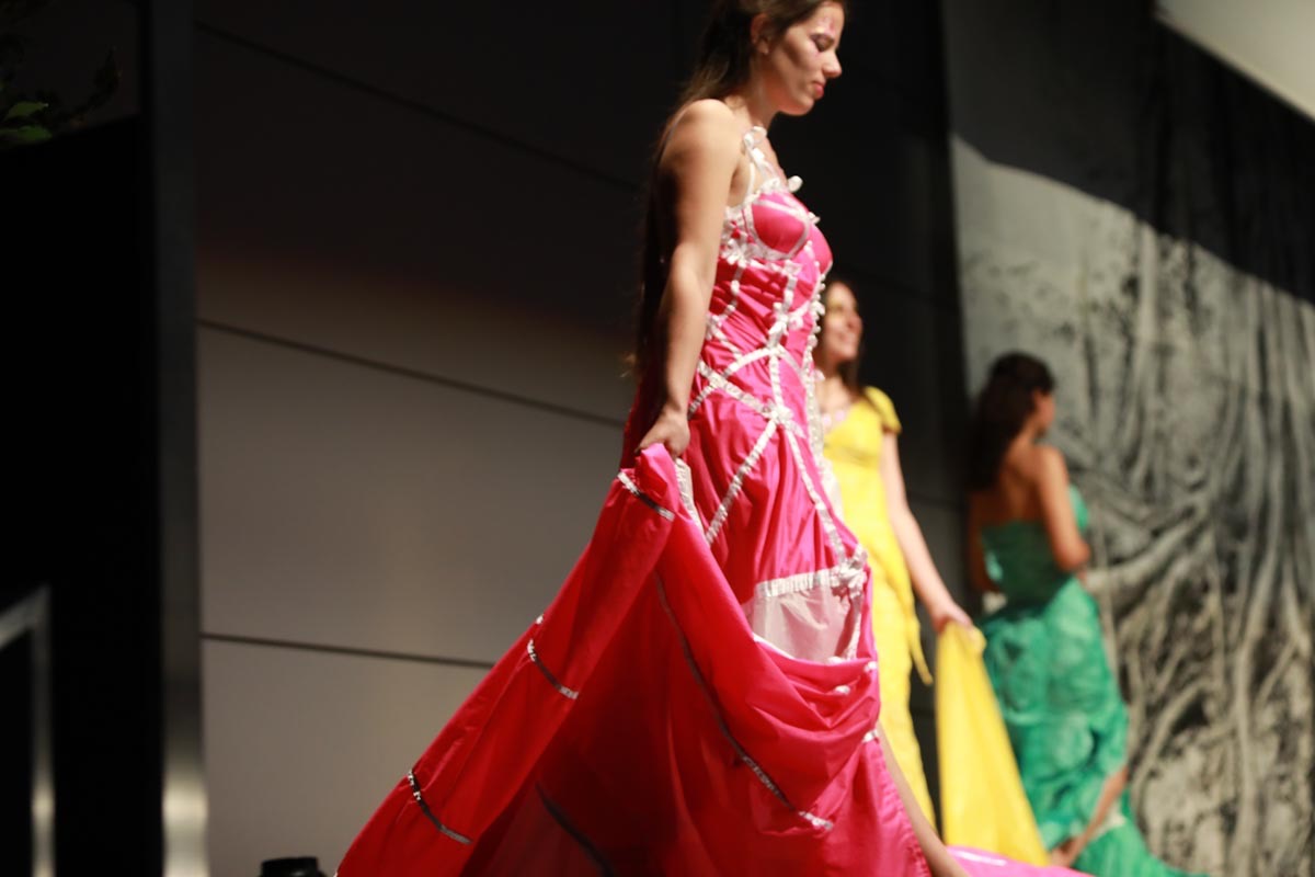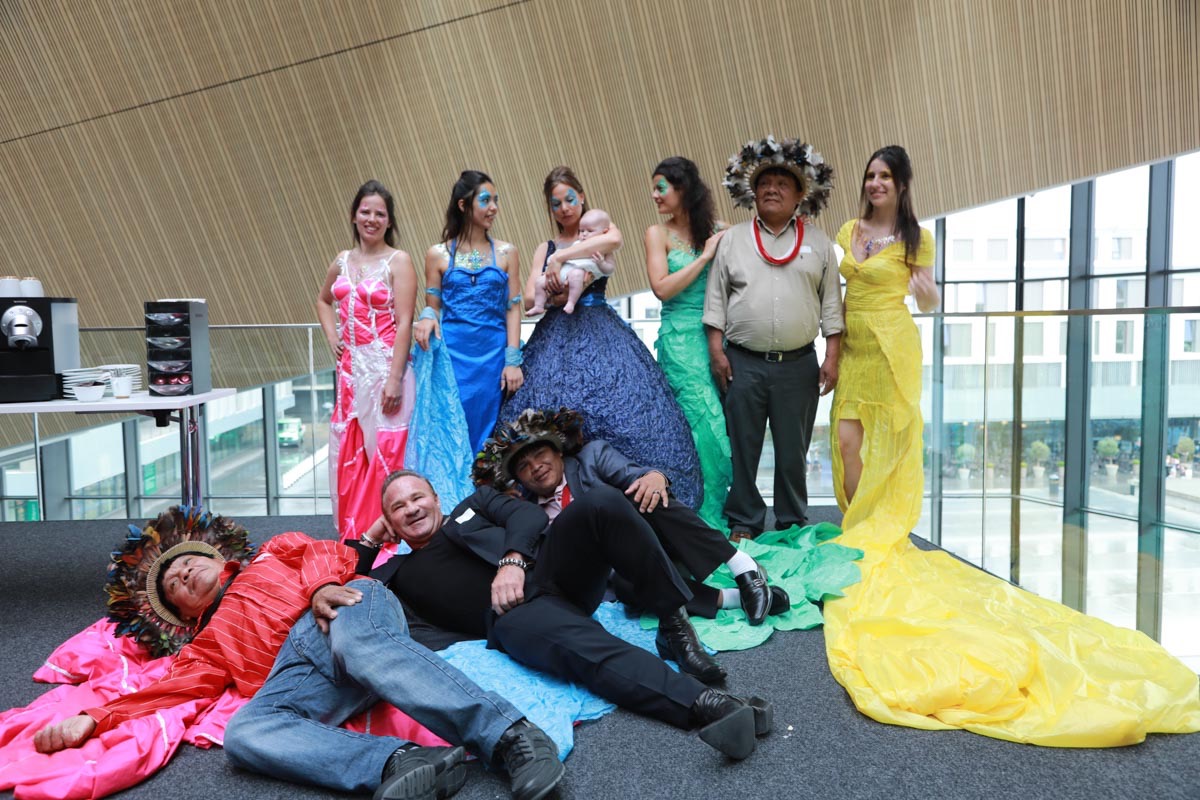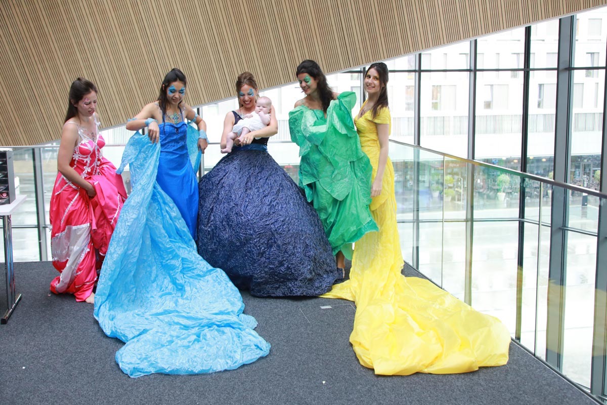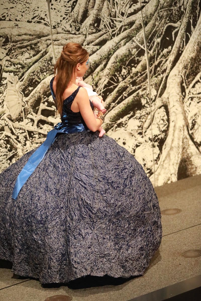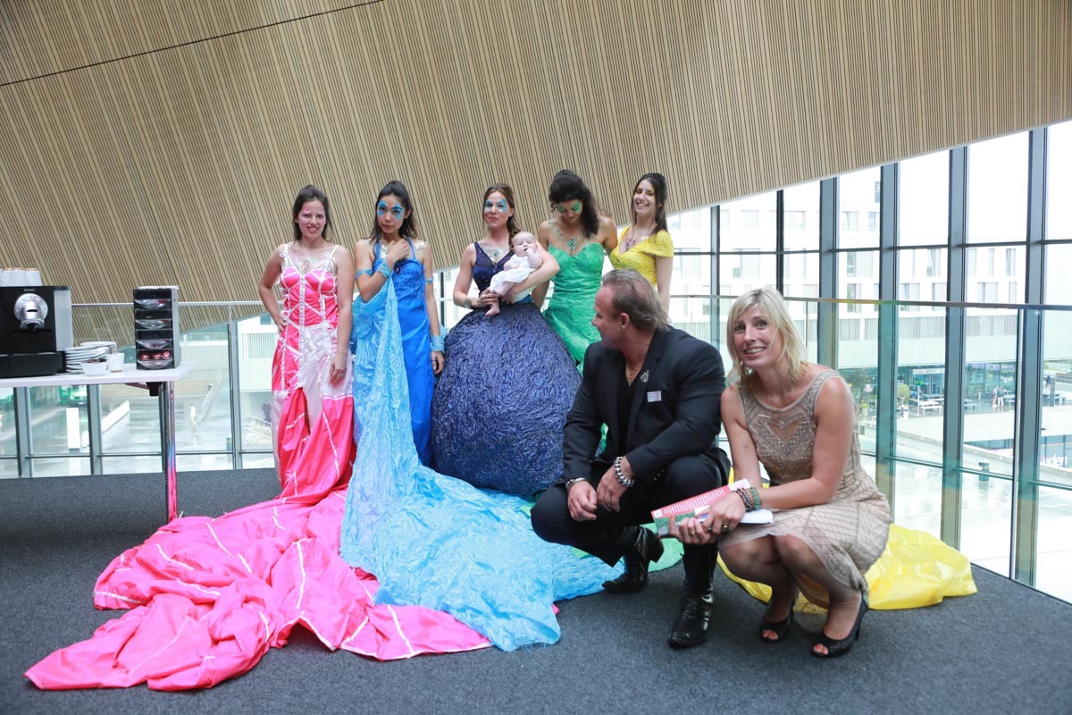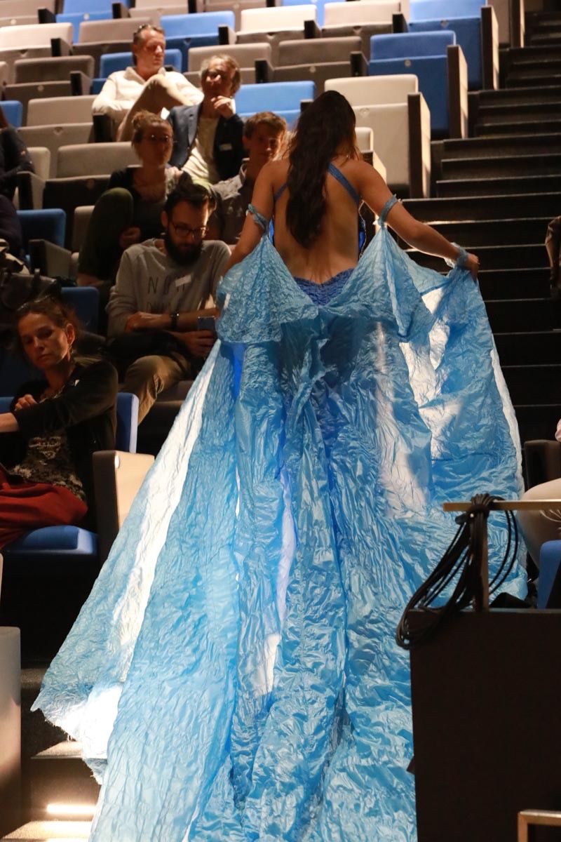 - Tess Roux Pache présente la robe Papillon crée en hommage au peuple Surui , elle est réalisée en parachute recyclé (don de voile de la Fédération Française de Parachutisme )