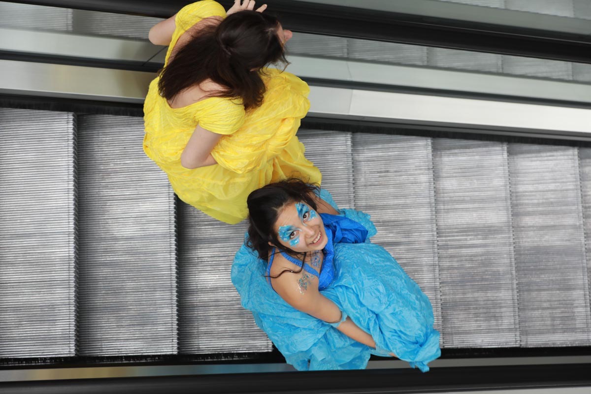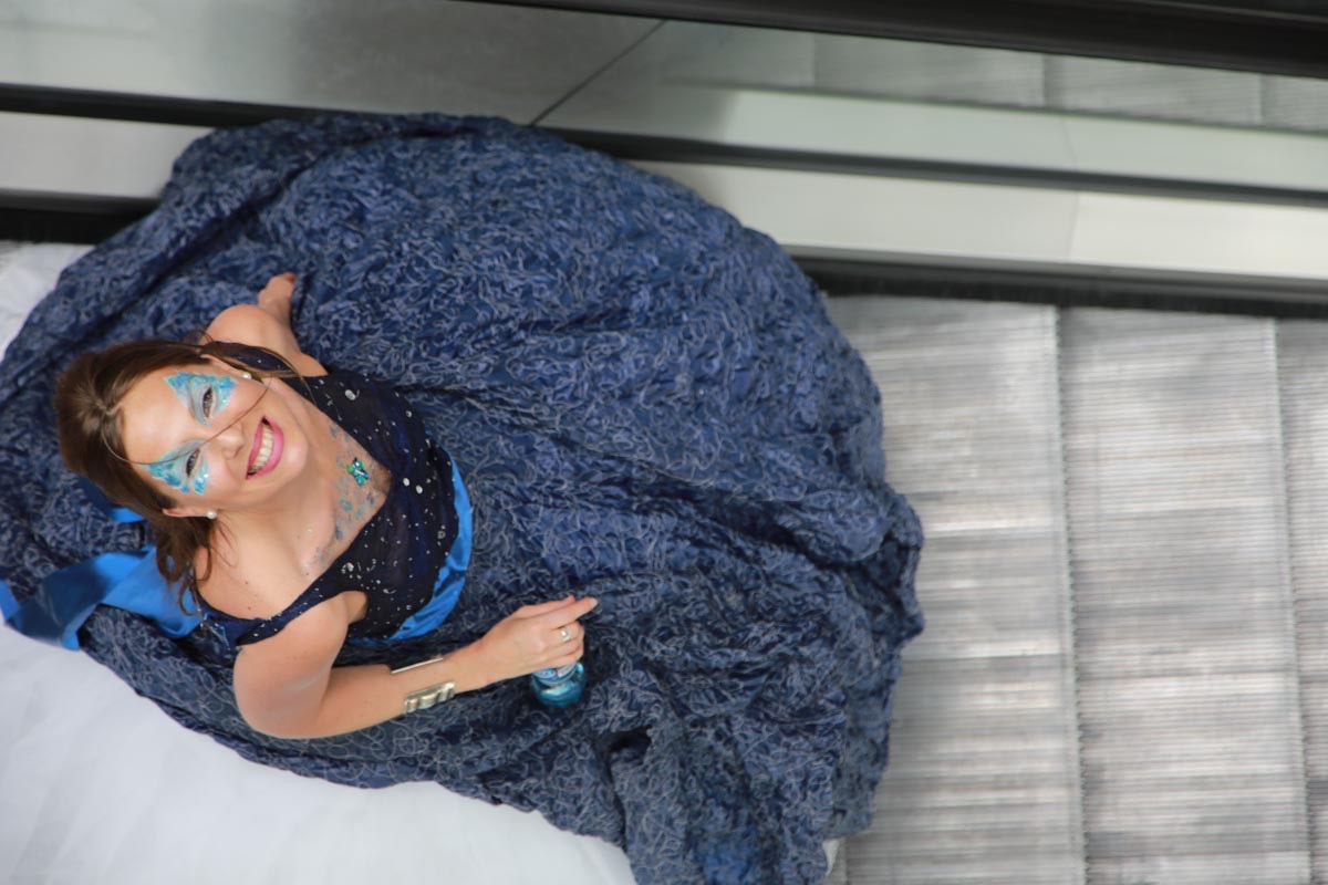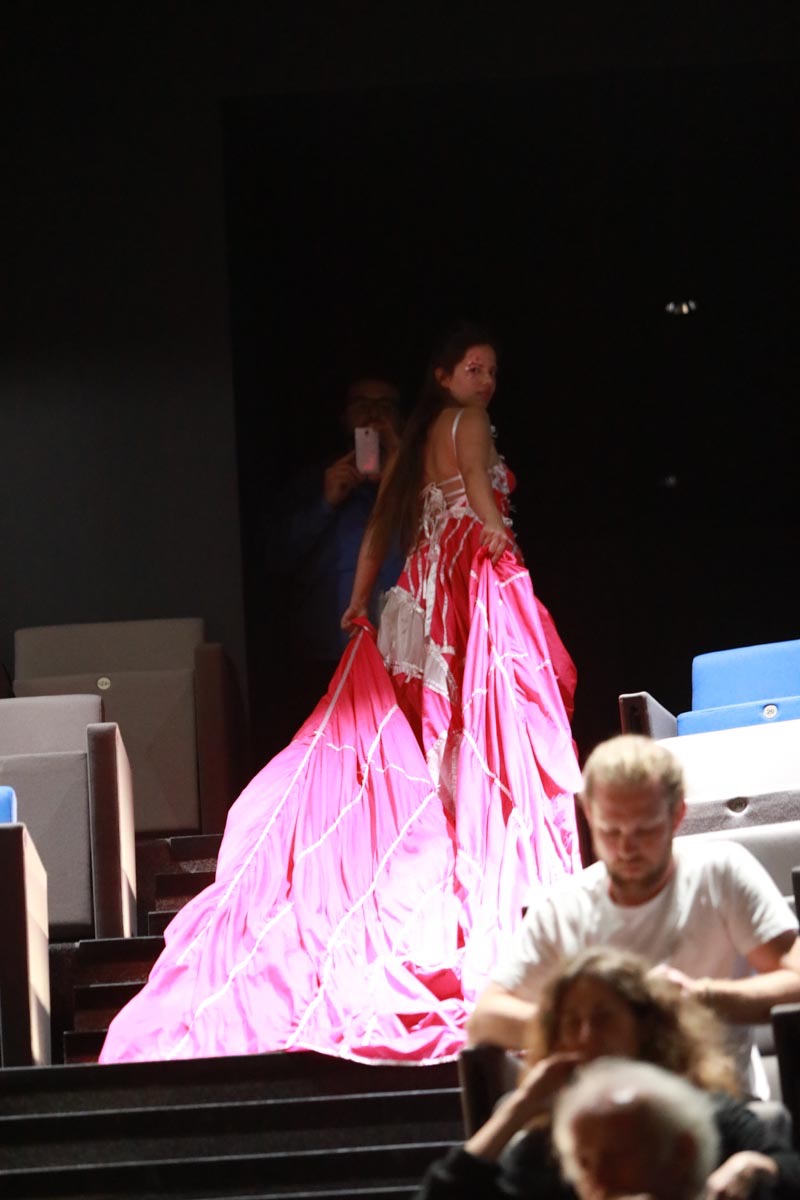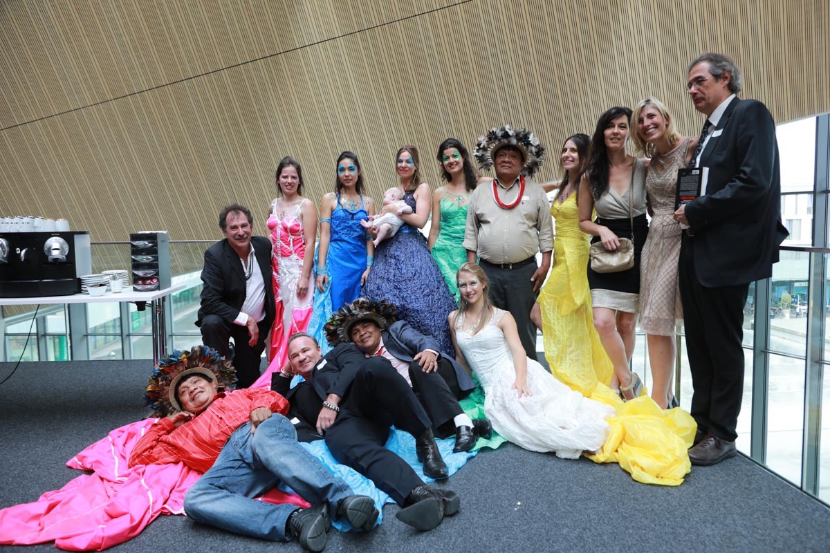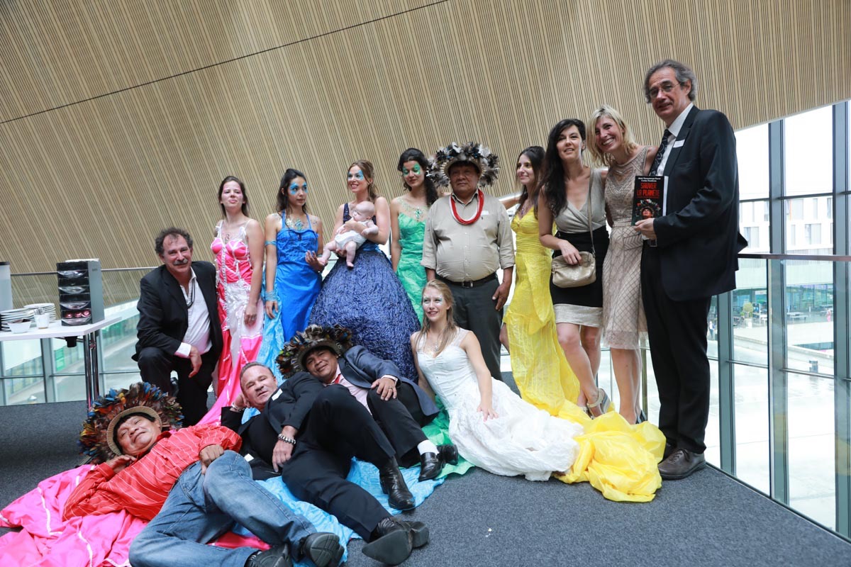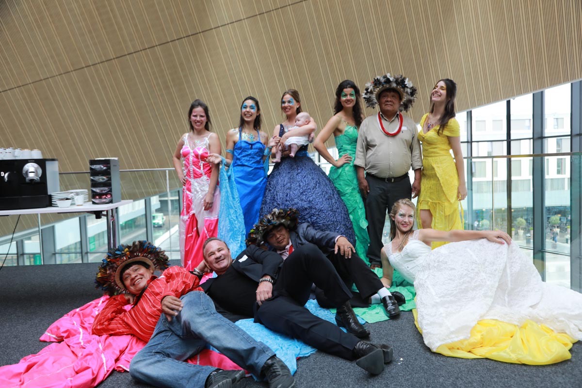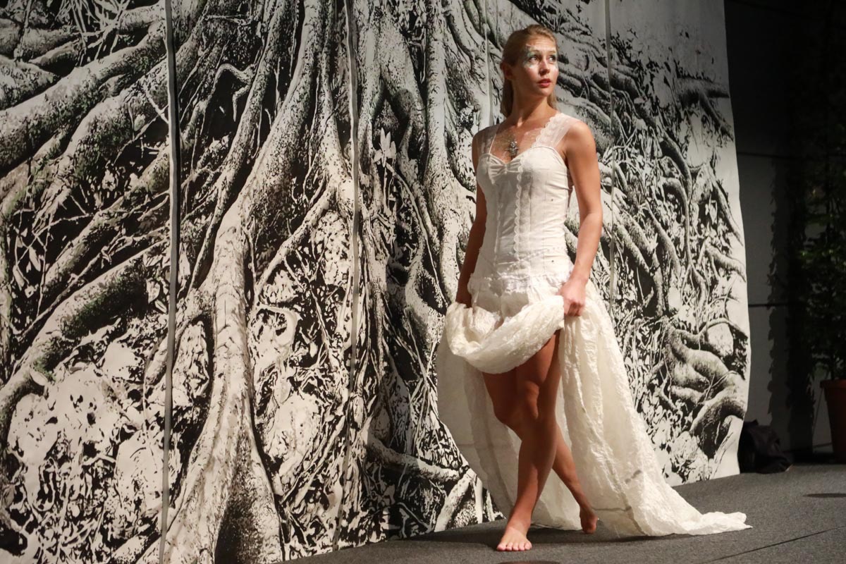 - Tess Roux Pache présente la robe Papillon crée en hommage au peuple Surui , elle est réalisée en parachute recyclé (don de voile de la Fédération Française de Parachutisme )