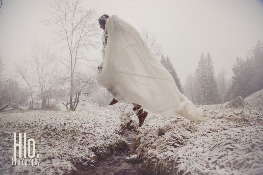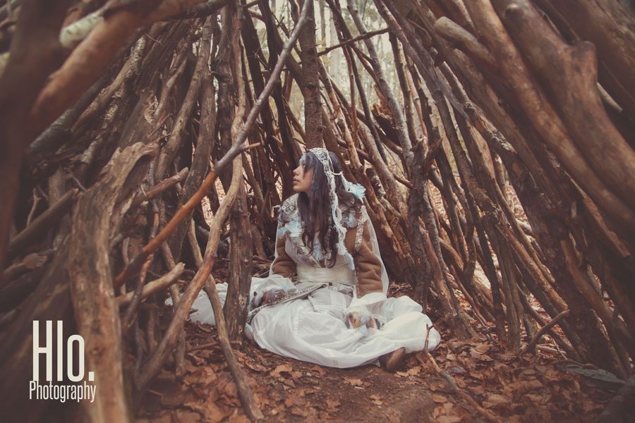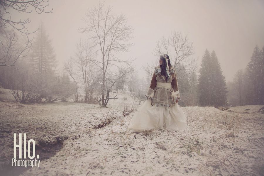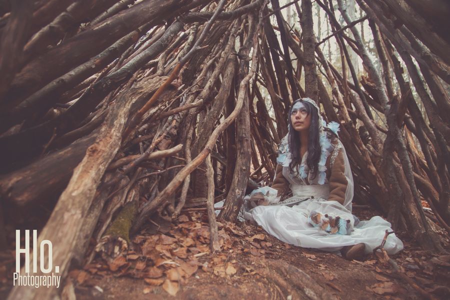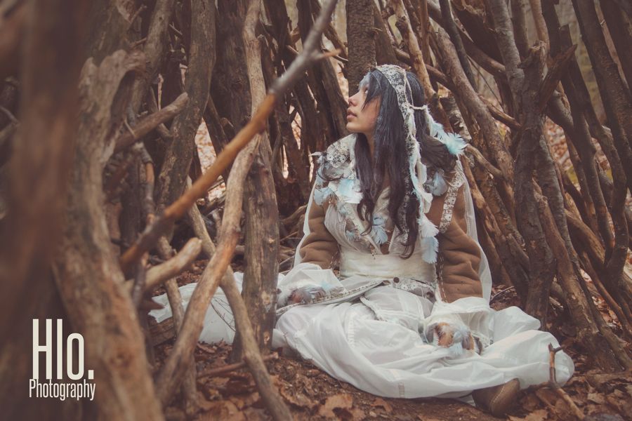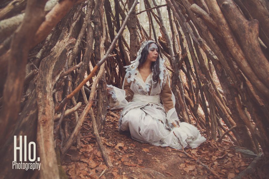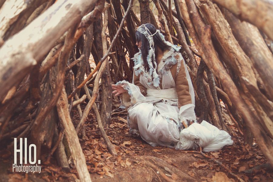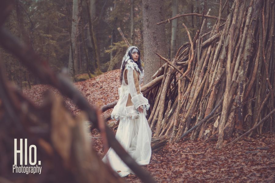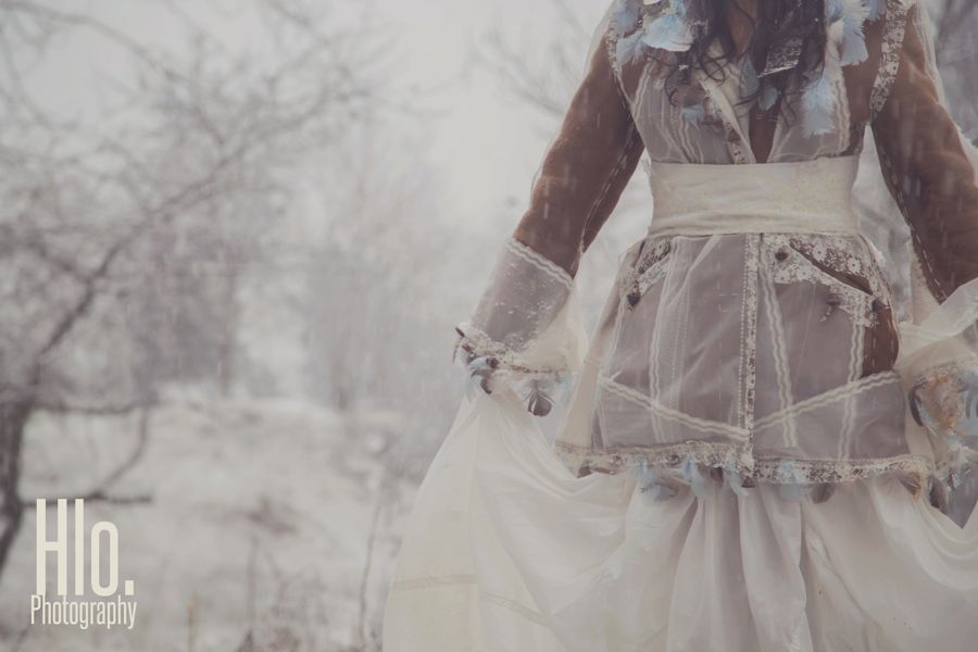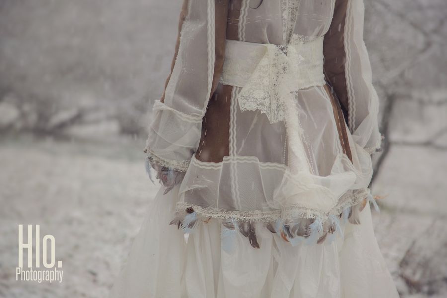 Robe en parachute , manteau composé de peau, dentelles, plumes1